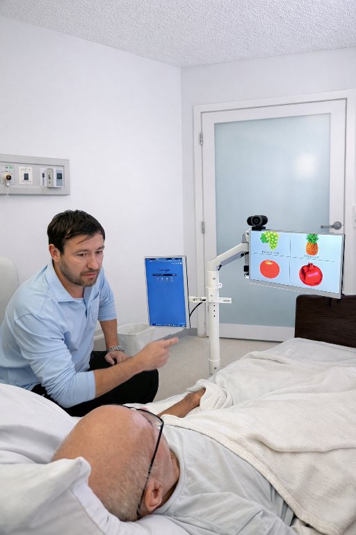 Neurocub helps care teams reduce that gap by enabling structured bedside sessions on a predictable schedule — keeping the patient’s cognitive routine active between specialist visits.