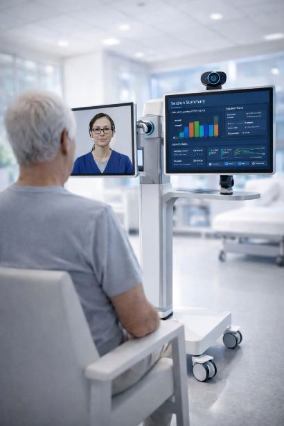 The system enables clinicians to extend their therapeutic reach — supporting multiple bedside sessions across wards without the need for continuous one-to-one physical presence.